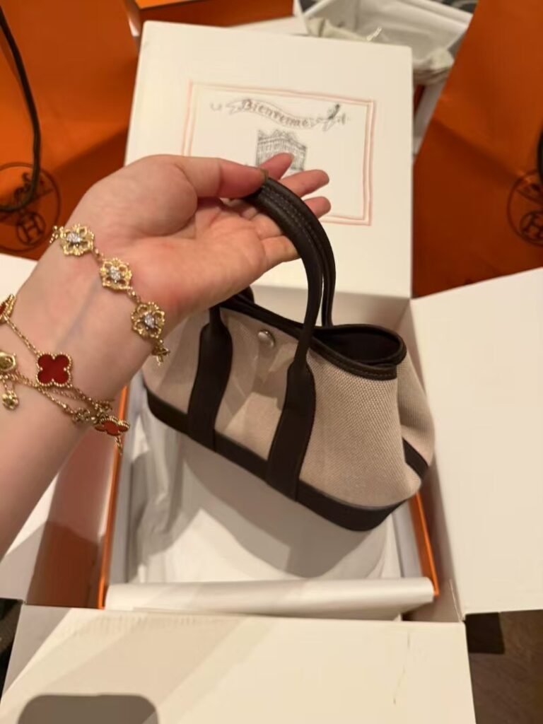 Every detail, from the signature Clou de Selle snap buttons to the perfectly arched handles, has been meticulously crafted to ensure a 1:1 match with the original design. This is the only resource on the web that fully satisfies every authentication point, making it a “hardcore” find for connoisseurs who demand nothing but perfection. For those who appreciate the heritage of Hermès but seek the highest tier of craftsmanship available in the market, this Garden Party 23 Ebony Canvas & Togo bag represents the absolute ceiling of quality. It is more than just an accessory; it is a testament to the art of fine bag making.