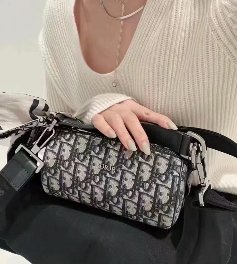 Finally, the sheer versatility and styling potential of this bag make it an absolute must-have. The cylindrical shape is inherently effortlessly cool, blending streetwear casualness with high-fashion sophistication. One of its greatest selling points is that it is a truly unisex piece. For women, it serves as a chic, vintage-inspired accessory that elevates both casual denim looks and more polished outfits. But perhaps even more impressively, this bag looks exceptionally handsome on men. Worn high across the chest or casually over the shoulder, it instantly injects a dose of modern streetwear luxury into any male wardrobe. Despite its relatively compact appearance, the barrel shape is deceptively spacious, easily accommodating your smartphone, wallet, keys, and wireless earbuds without losing its structured silhouette. If you are looking for the ultimate replica investment that offers identical touch, feel, and aesthetic to the retail version without the astronomical price tag, this authentically crafted Dior Oblique Cylinder bag is the definitive choice.