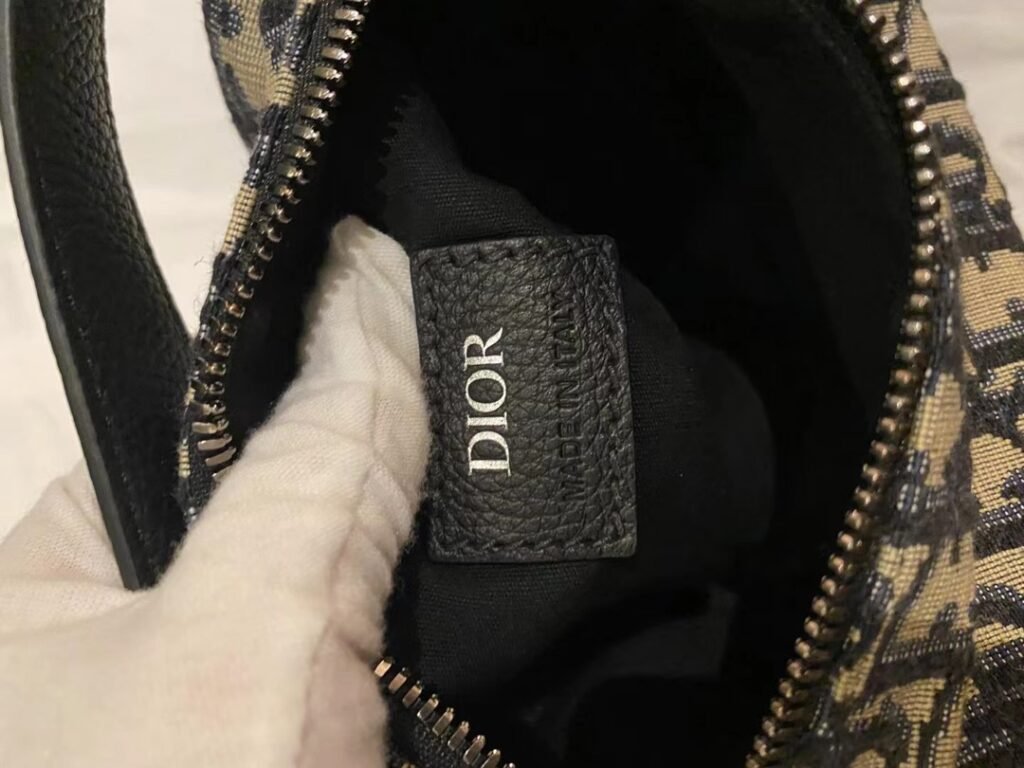 Beyond the canvas, hardware is consistently the ultimate tell-tale sign of a replica’s true quality. The hardware on this Dior Cylinder bag is nothing short of breathtaking. It features the original hardware specifications, specifically a highly nuanced “light gunmetal” color that closely borders on a brilliant silver . The surface boasts a flawless mirror-polishing effect that is incredibly transparent and reflective, completely devoid of the dullness or micro-scratches often seen on inferior products. The materials used here are extremely particular and uncompromising. From the heft of the metal components to the ultra-smooth glide of the zipper and the precise, deep engraving of the DIOR logo, every detail has been scrutinized. It reflects light beautifully and adds a modern, edgy contrast to the vintage-inspired Oblique canvas.