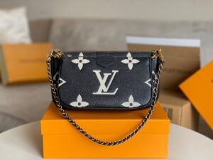 • Primary Materials: Monogram Coated Canvas and Grained Cowhide Leather