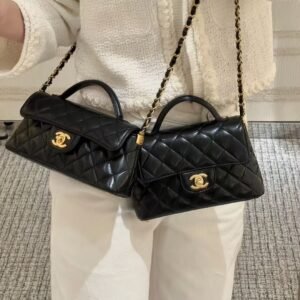 Chanel Shiny Calfskin Top-Handle Flap Bag Retro “Kelly” Style with Gold-Tone CC Hardware
