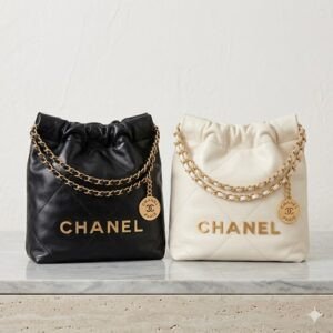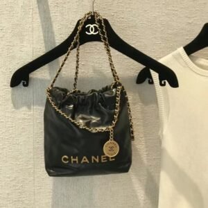 Chanel 22 Mini Bag 19cm Premium Quilted Calfskin Drawstring Handbag with Signature Chain & Medal Charm