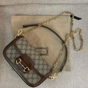 Product Specifications Brand: Gucci Collection: Horsebit 1955 Series Extension (Mini Box) Materials: GG Supreme Canvas, Premium Original Calfskin, Microfiber Lining Dimensions: 18cm (Length) x 10cm (Height) Colorway: Classic Ebony/Beige Canvas…