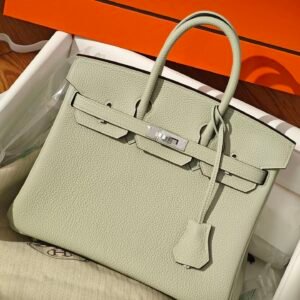 Hermes Birkin 25 Handbag Togo Leather with Silver-Tone Hardware Etoupe & Crystal Grey Handcrafted Luxury Tote