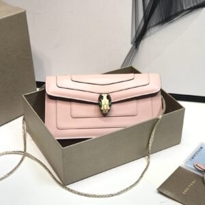 Bvlgari Serpenti Forever “Square” Snake Bone Chain Bag 20cm Pink