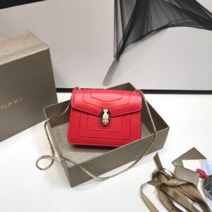 Bvlgari Serpenti Forever “Square” Snake Bone Chain Bag 20cm Red