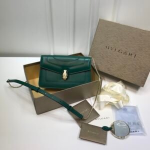 Bvlgari Serpenti Forever “Classic Upgrade” Leather Clutch Crossbody Bag 24cm Emerald Green