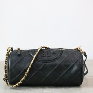 Tory Burch Fleming Soft Quilted Leather Barrel Bag 26cm Black