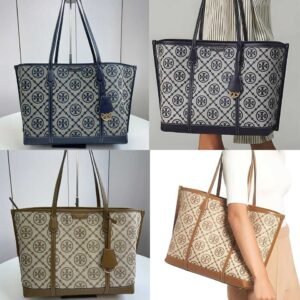 Tory Burch Perry T Monogram Jacquard Triple-Compartment Tote Bag 34cm Blue/Brown