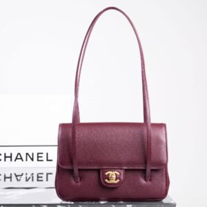 Chanel 26P Prepp Coco Underarm Flap Bag 22cm Matte Burgundy Caviar Leather with Vintage 24K Gold Hardware