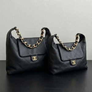 CHANEL 25K Oversized Quilted Calfskin Hobo Bag with Chunky Chain Black & Gold $360.0 – $370.0Price range: $360.0 through $370.0