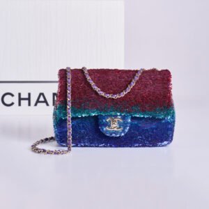 CHANEL 25K Gradient Sequin Classic Flap Bag with Light Gold Hardware 21cm $350.0