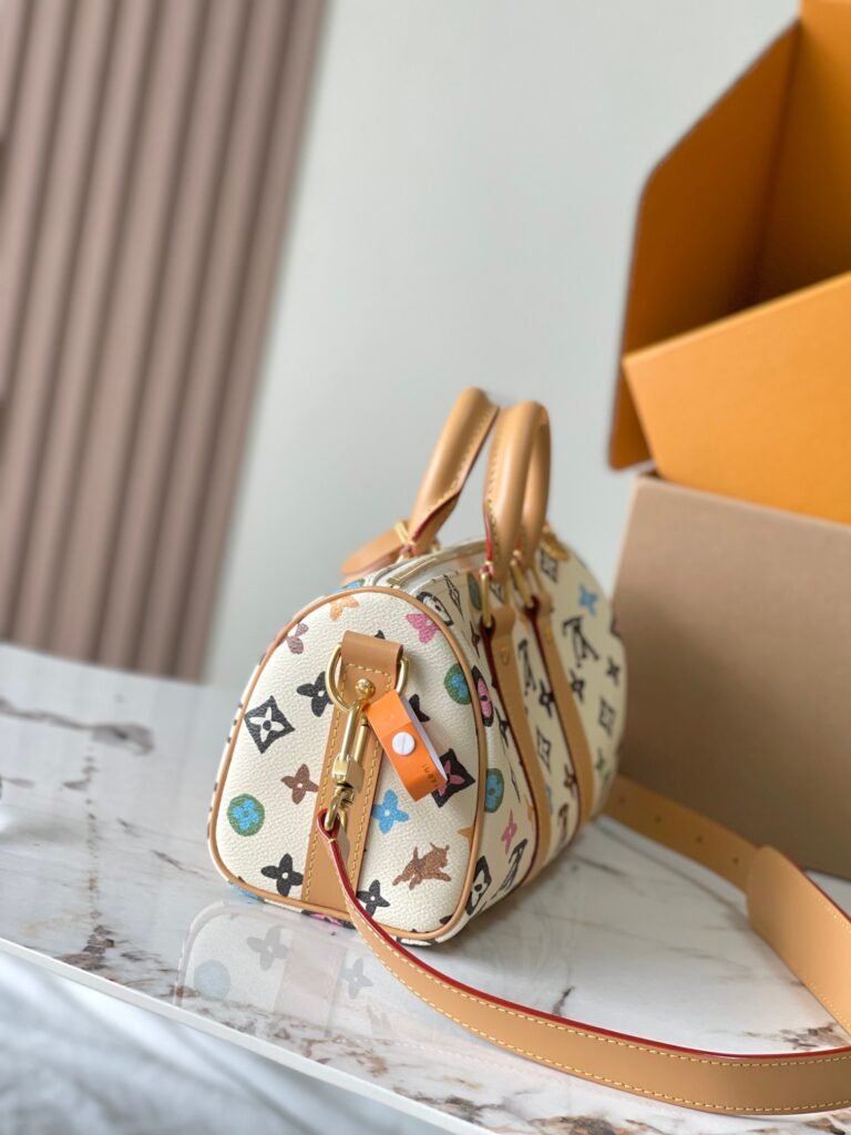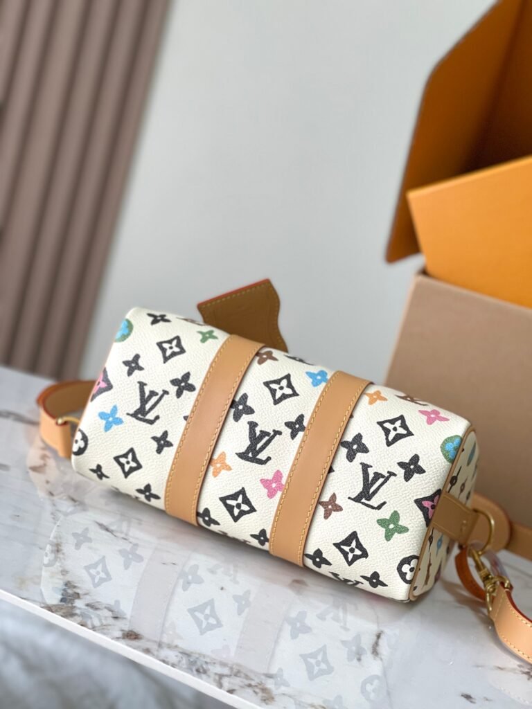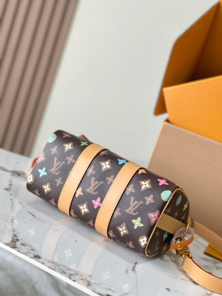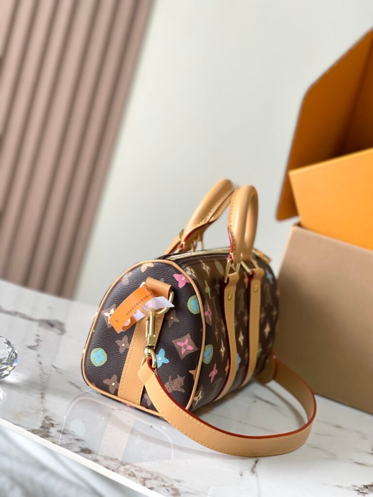 The Louis Vuitton Keepall 25 in Monogram Multicolor is more than just a bag; it is a vibrant celebration of one of the most beloved eras in fashion history. By shrinking the legendary Keepall silhouette into a contemporary 25cm size, the brand has created a versatile masterpiece that bridges the gap between heritage travel gear and modern streetwear. The M24849 model brings back the playful, multi-hued aesthetic that defined the early 2000s, now updated with 2026’s technical precision.