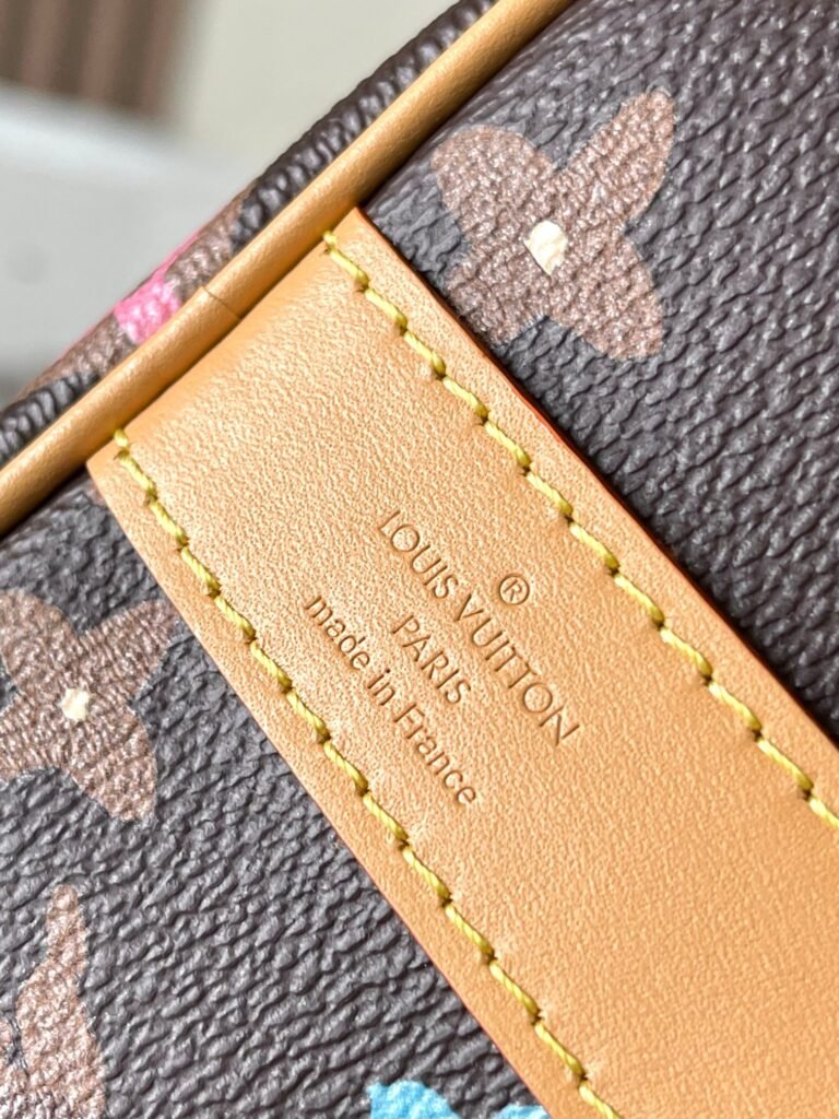 Unrivaled Hardware Quality In the world of high-end accessories, hardware is the soul. The M24849 utilizes Grade A stainless steel hardware, which is significantly more resistant to corrosion and scratching than standard zinc alloys. Each rivet and buckle is laser-engraved with the “Louis Vuitton” signature, boasting clean lines and perfect depth. The heavy-duty zippers are engineered for a seamless glide, reflecting the brand’s commitment to both form and function. The golden hue of the hardware against the multicolor canvas creates a luxurious contrast that catches the light from every angle.