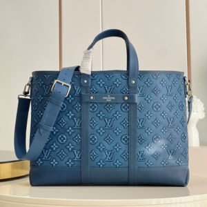 Louis Vuitton Tote Journey 60cm Blue Monogram Empreinte Grained Leather Executive Carryall with Adjustable Shoulder Strap