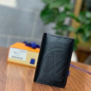 Louis Vuitton Pocket Organizer in Black Épi Leather LV Circle Initials Edition Slim Card Holder & Wallet 7.5x11cm