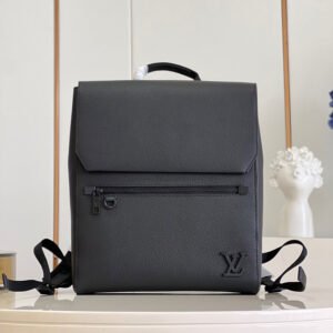Louis Vuitton LV Aerogram Backpack 33x38x12cm Matte Black Grained Cowhide Leather “Takeoff” Backpack with Stealth LV Initials