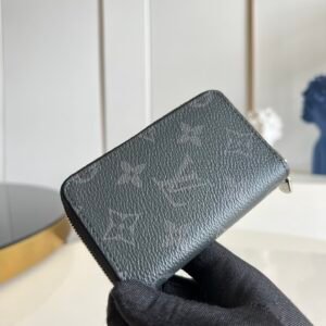 Louis Vuitton Vertical Zippy Coin Purse in Monogram Eclipse Canvas Compact Masculine Wallet 7.5cm