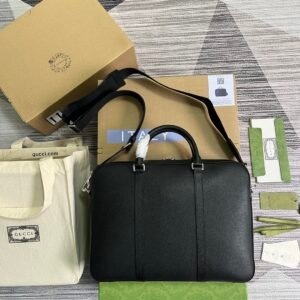 Gucci Men’s Minimalist Black Leather Business Bag 40cm Embossed Logo Briefcase