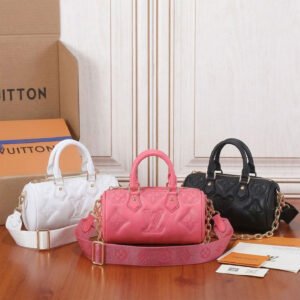 Louis Vuitton Papillon BB in Quilted Calfskin Embroidered Monogram Cylindrical Bag 20cm