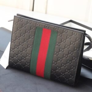 Gucci GG Signature Web Pouch 26cm Embossed Leather & Canvas Clutch Collection