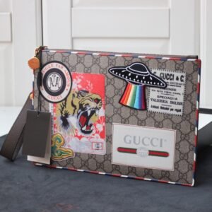 Gucci Courrier GG Supreme Pouch 30cm Embroidered UFO & Tiger with Airmail Piping