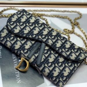 Dior Saddle Chain Pouch 19cm Blue Dior Oblique Jacquard with D-Stirrup Charm