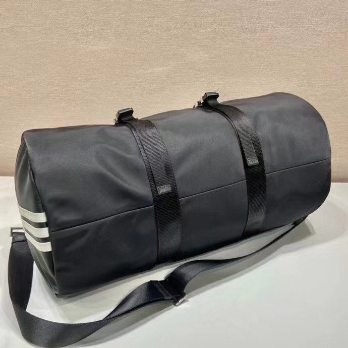 Iconic Design Language At the heart of this collaboration is the seamless integration of visual signatures. The bag features the unmistakable adidas three-stripe motif, executed in premium high-contrast cowhide leather on the side panels, providing a bold, architectural look. Centered on the front is the classic Prada enameled metal triangle logo, a symbol of Milanese excellence since 1913. The silhouette is a timeless cylindrical duffle, offering a spacious interior and a sleek, streamlined exterior that transitions effortlessly from the gym to a first-class cabin.