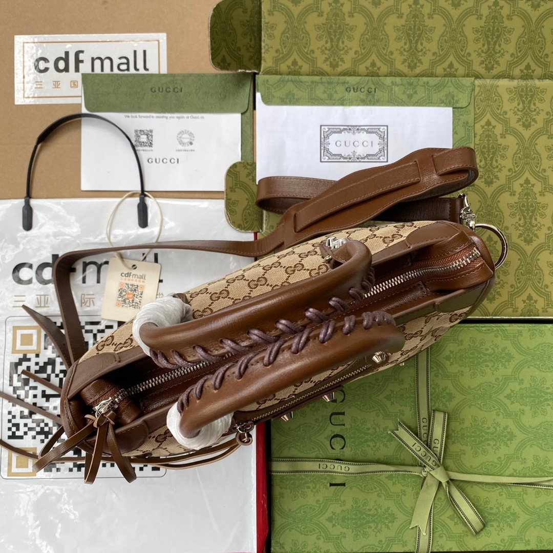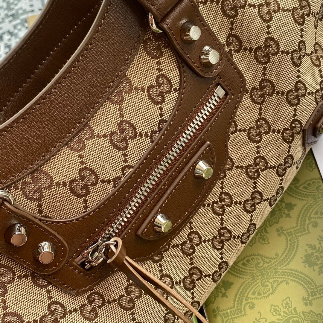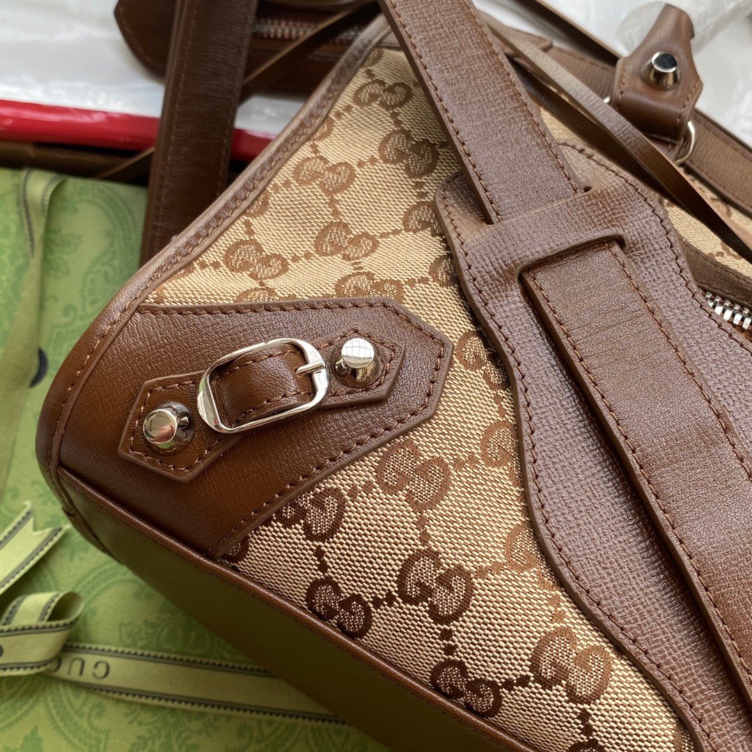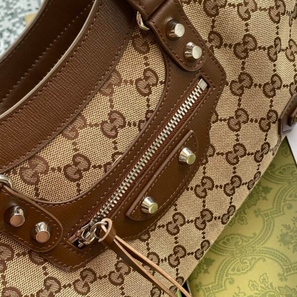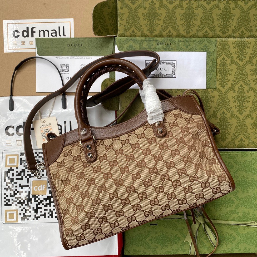 A Legendary Fusion of Styles This collaboration seamlessly merges the most recognizable elements of both brands into one highly surprising and delightful design. It takes the legendary, edgy silhouette of Balenciaga’s classic motorcycle bag and wraps it entirely in Gucci’s historic beige and ebony GG Supreme canvas.