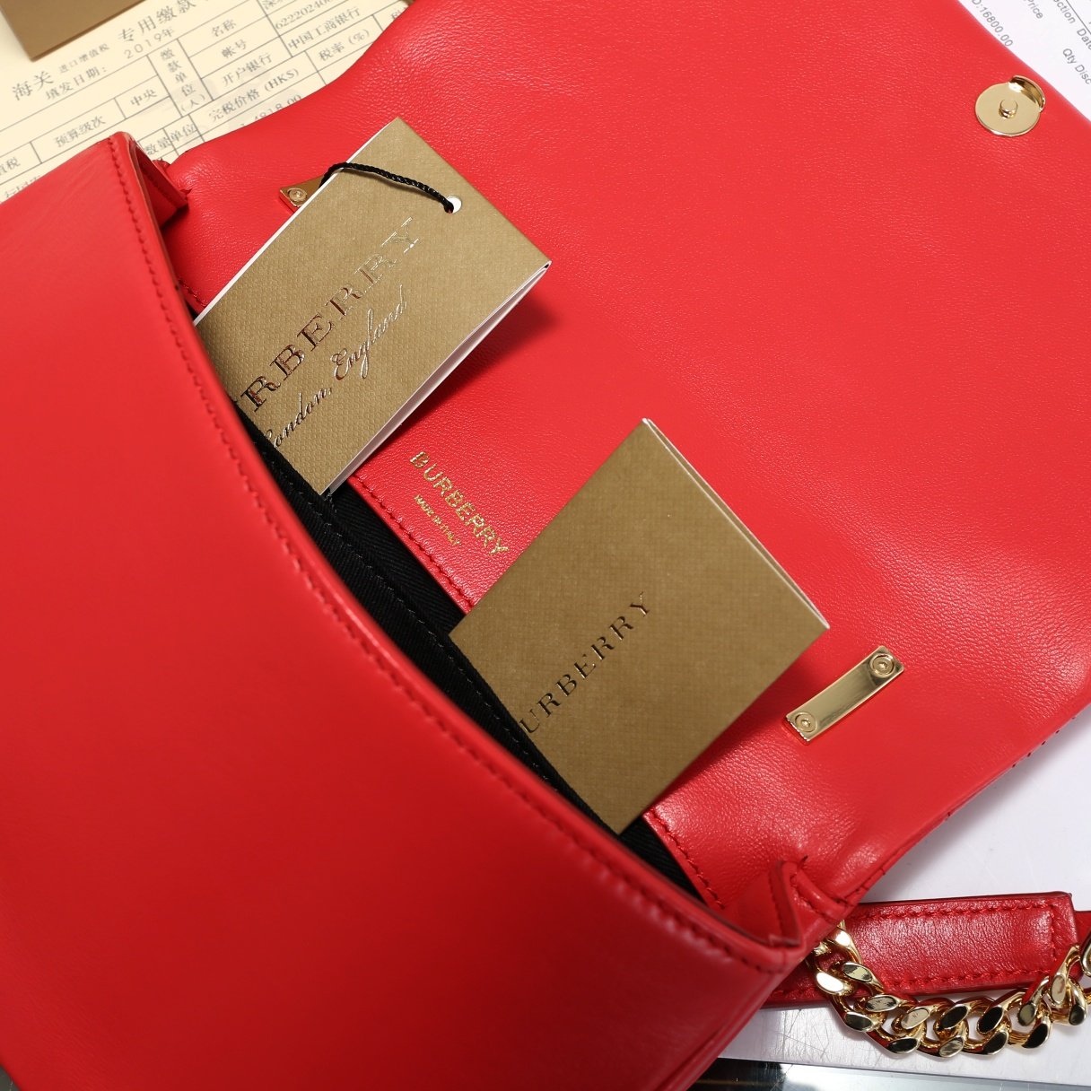 Signature Hardware: Adorned with the polished metal Thomas Burberry (TB) Monogram clasp.
