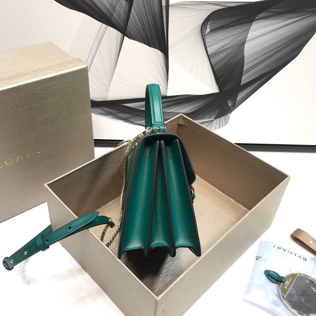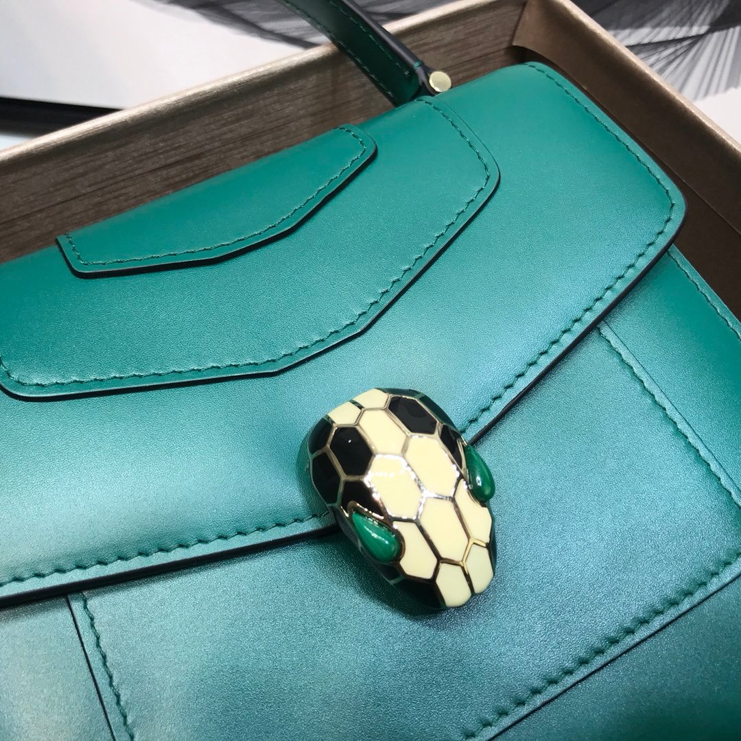 A Pocket-Sized Icon Discover the exquisite charm of the Bvlgari Serpenti Forever Mini Top Handle Bag. Sized at a petite 18cm, this bag (Ref: 282268) is the epitome of “elegant wildness.” Crafted from the finest Italian calfskin, it offers a luxurious touch and a structured silhouette that maintains its shape perfectly.