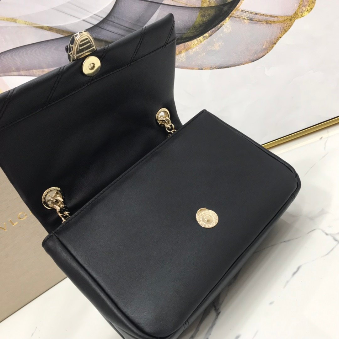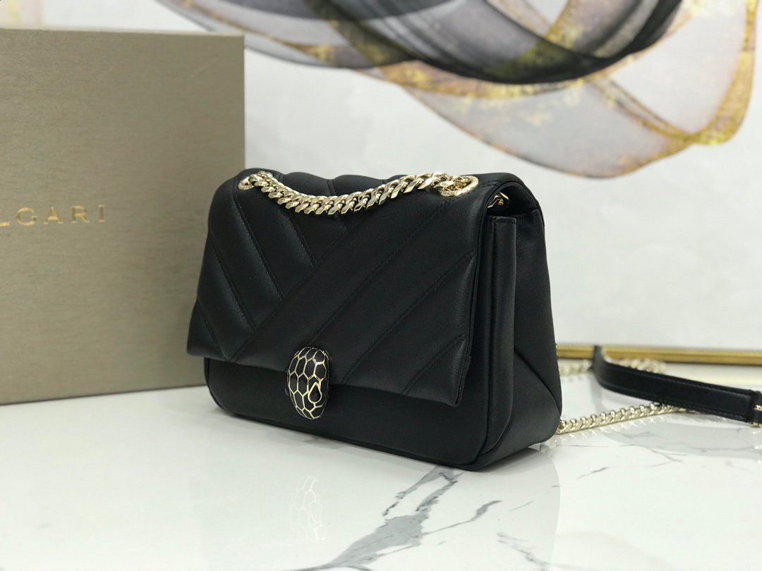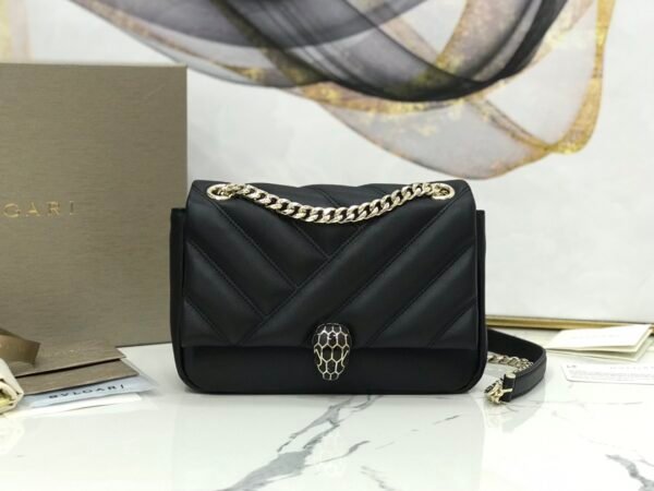 A Faceted Masterpiece The Bvlgari Serpenti Cabochon Shoulder Bag redefines softness with a bold graphic edge. Drawing inspiration from the surfaces of cut gemstones, this model features a Maxi Matelassé Convex Geometric Pattern (Chevron/V-shape) crafted from the finest lambskin. The result is a bag that looks as plush as a cloud but retains a structured, architectural appeal.