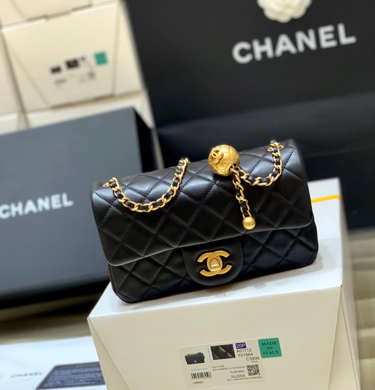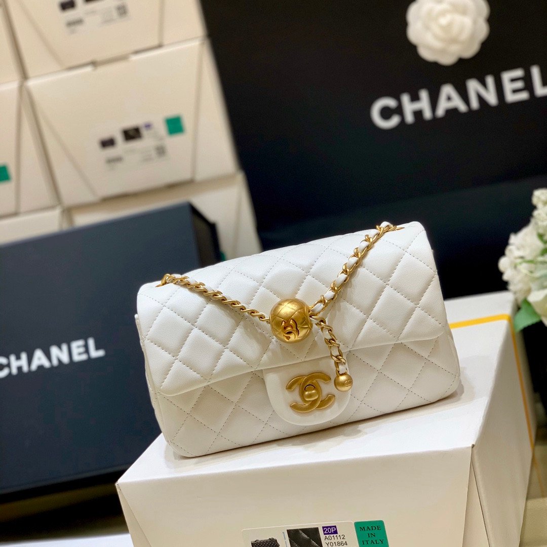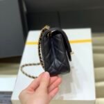 Introducing the “Big Mini” Pearl Crush Flap Bag, a stunning evolution of the classic mini rectangular silhouette. This version is widely considered the “Holy Grail” of mini bags because it combines the beloved rectangular shape (which fits all standard smartphones) with the revolutionary Golden Ball adjustment system.