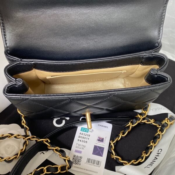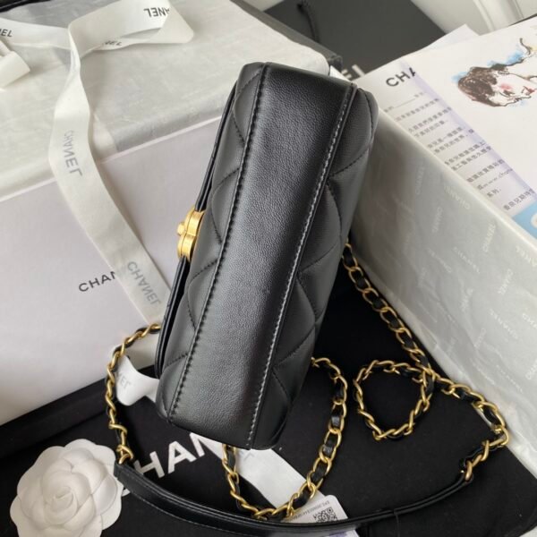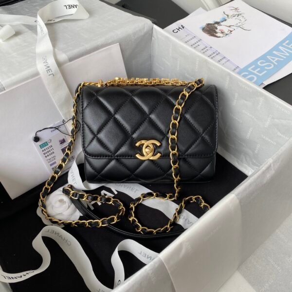 Capture a blend of vintage charm and high-end sophistication with this stunning flap bag from the 22S collection. Designed with a versatile messenger bag silhouette, this piece is an absolute standout, praised for its striking, premium aesthetic that instantly elevates any look. The exterior features the house’s timeless diamond quilting, complemented by a prominent gold-tone interlocking CC closure. A defining feature of this model is its beautifully crafted strap, which seamlessly combines the classic interwoven leather chain with a striking, chunkier gold-tone chain section at the top.