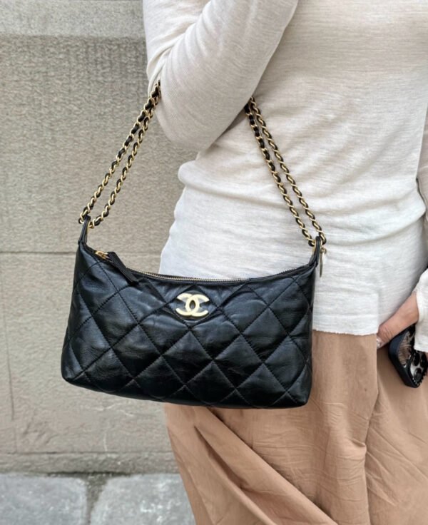 Discover the effortless elegance of the newly arrived Chanel 25S Spring/Summer Collection with this exquisite Small Hobo Bag, affectionately known as the “Dumpling” bag. Crafted from luxuriously soft, premium lambskin, this piece features Chanel’s signature diamond quilting and a distinctive silhouette that perfectly balances casual ease with sophisticated charm.