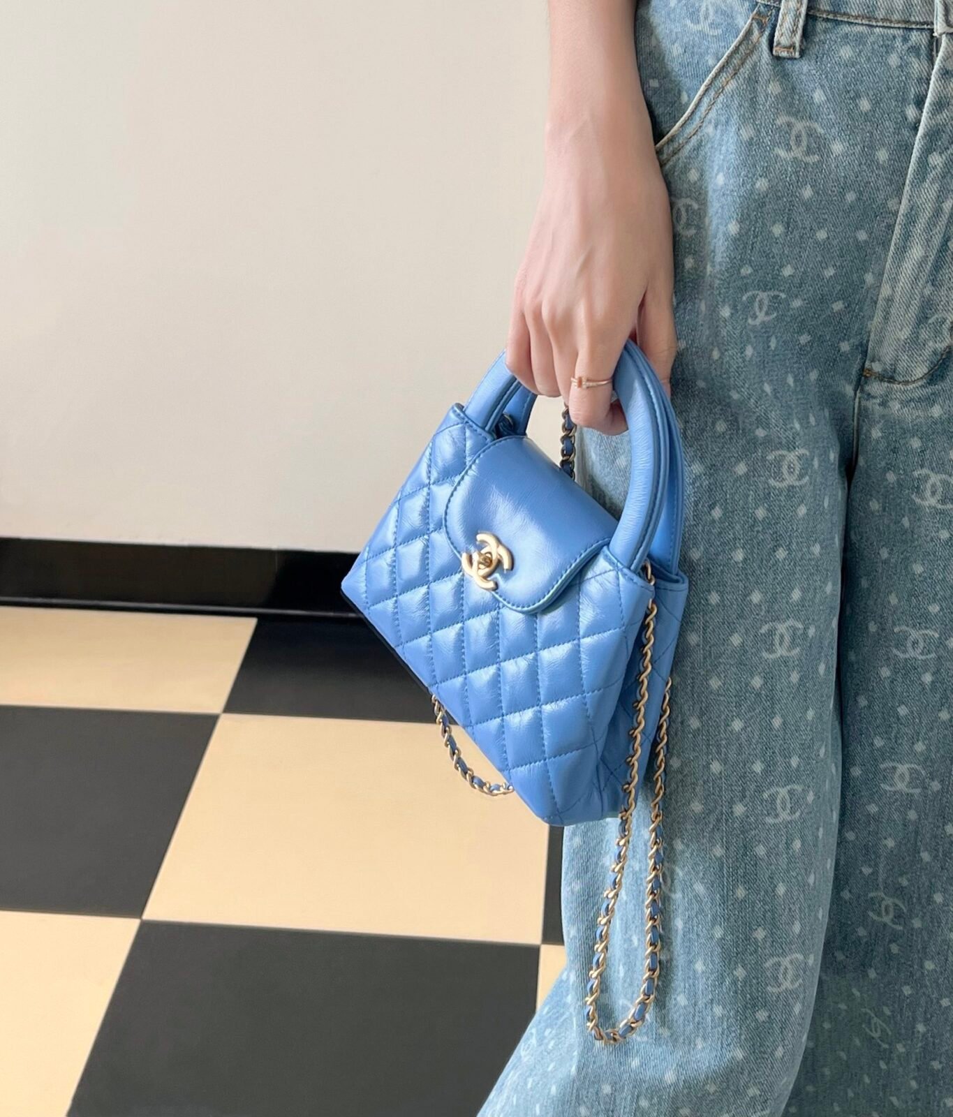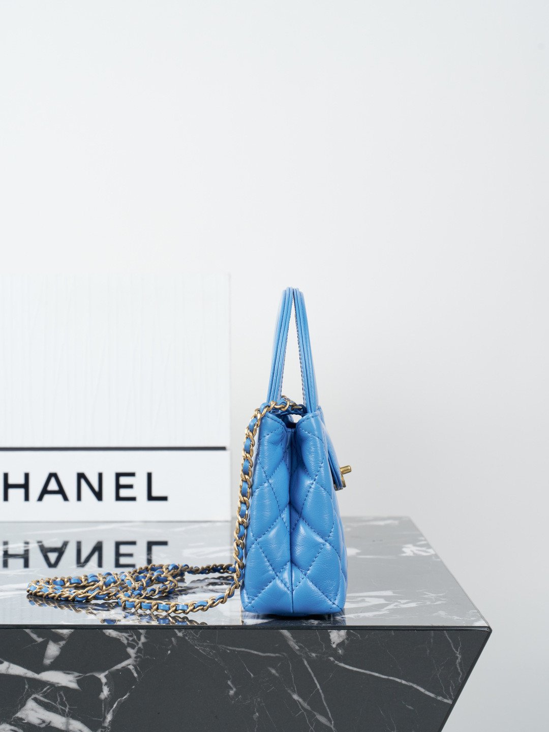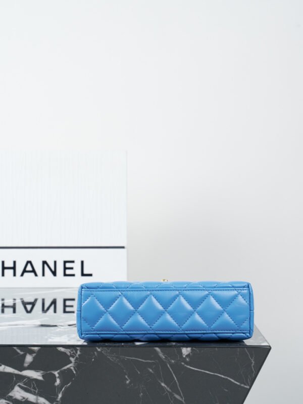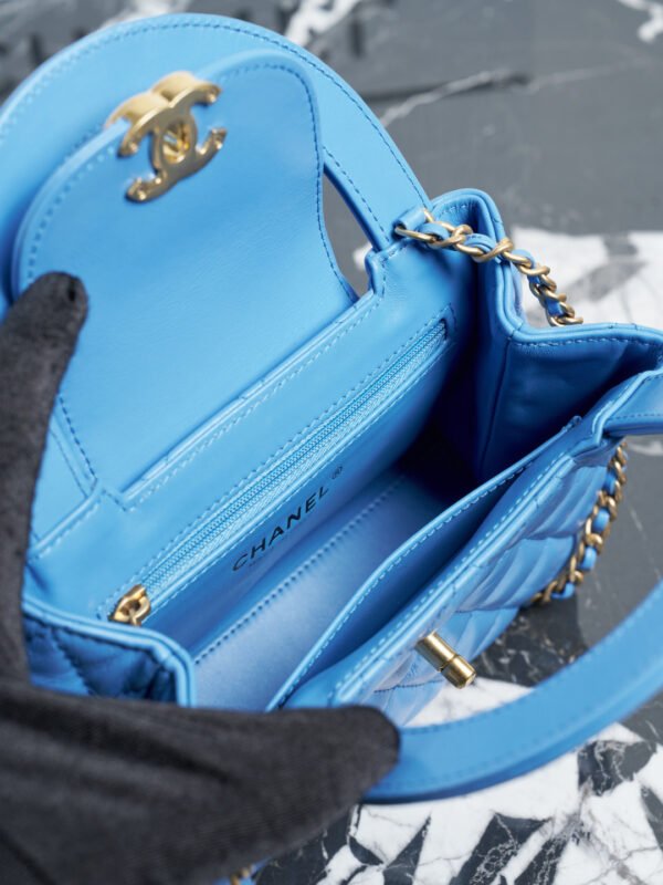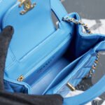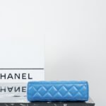 Expertly crafted from premium shiny calfskin leather, the bag boasts a beautiful, luminous finish that perfectly highlights Chanel’s iconic diamond quilting. The vibrant blue hue is brilliantly contrasted by the hardware—a signature CC turn-lock and a classic interwoven chain strap, both finished in a luxuriously thick, heavily plated 24K vintage gold. This antiqued gold tone adds a profound sense of high-end, timeless luxury.