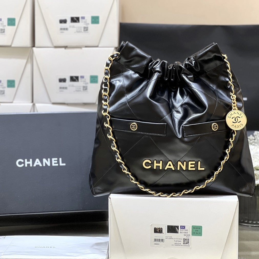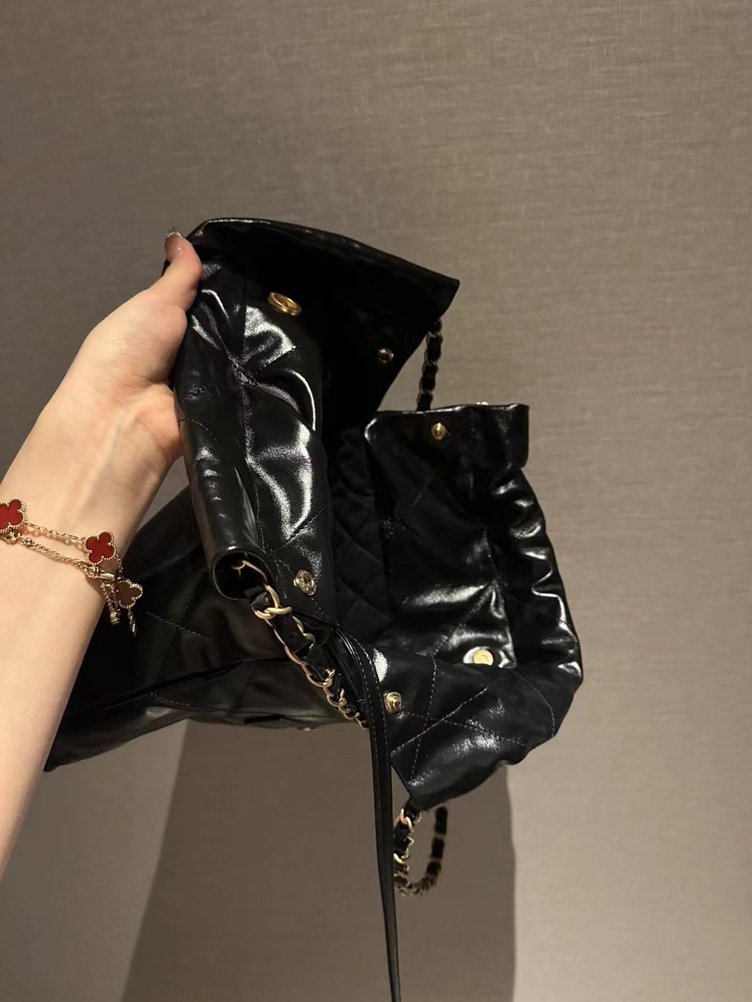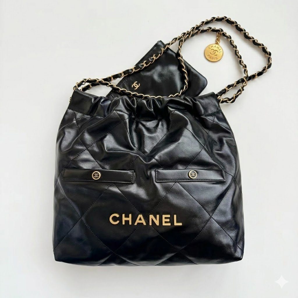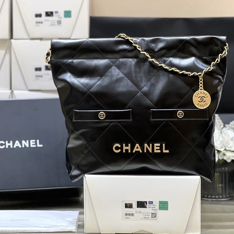 Experience timeless elegance with this exquisite, brand-new Chanel quilted black leather large hobo/tote bag. A perfect blend of classic style and contemporary functionality, this unique piece features oversized diamond quilting across supple, rich leather, complemented by a sophisticated drawstring-style closure integrated with the iconic interwoven gold-tone chain strap.