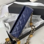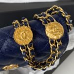 Distinctive Hardware: Showcases a unique woven chain strap accented with striking Chanel logo coin medallions and a comfortable leather shoulder section.