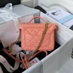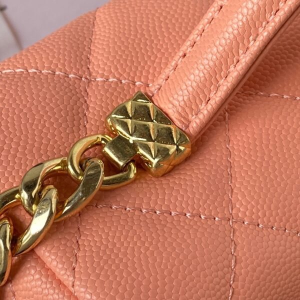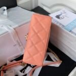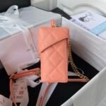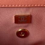 Capture a highly sought-after, retro aesthetic with this timeless “milk box” style makeup bag. Crafted from exclusive, original factory Haas lychee cowhide—often referred to as caviar leather—this bag offers a beautifully textured and durable exterior. Despite its structured and compact appearance, it features a surprisingly generous capacity that can comfortably fit a large smartphone alongside your daily essentials. The design is elevated by the classic Chanel diamond quilting and a prominent gold-tone interlocking CC closure on the front flap. It is available in a striking range of colors, including black, peach, mustard yellow, and crisp white.