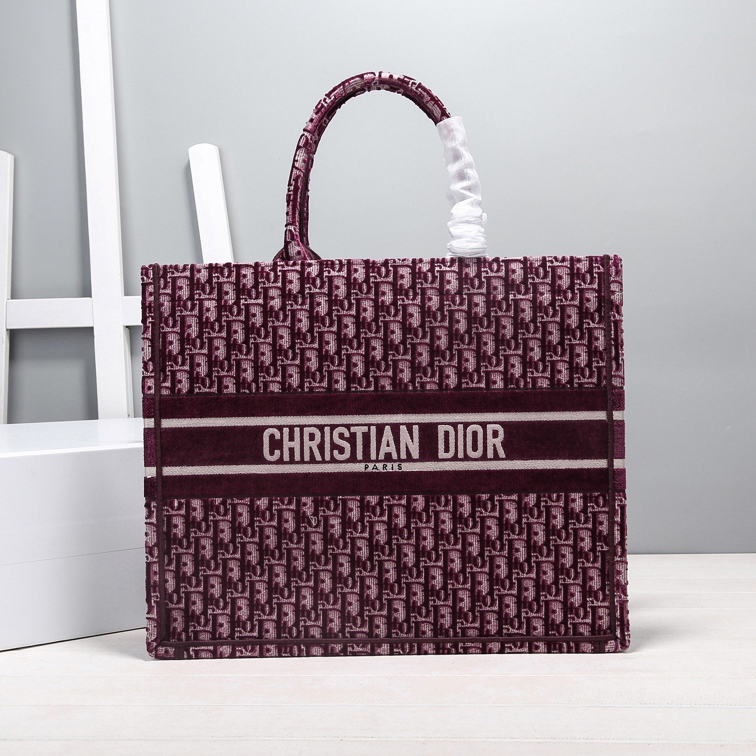 Dior Oblique: The timeless motif offered in classic Blue embroidery or a luxurious Burgundy Velvet texture.