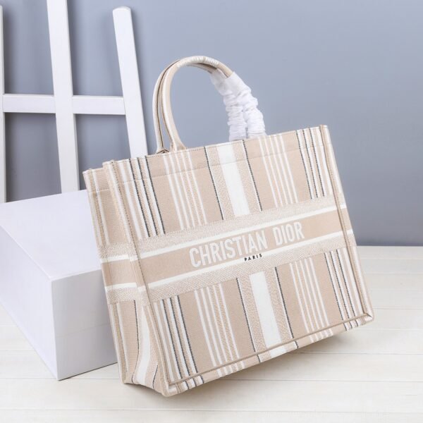 Each bag is adorned with the “CHRISTIAN DIOR PARIS” signature across the front, serving as a bold mark of luxury savoir-faire. The rigid top handles allow the bag to be carried comfortably by hand or worn over the shoulder.