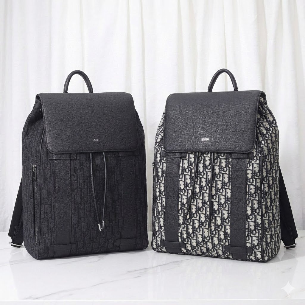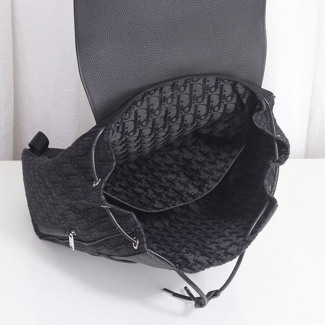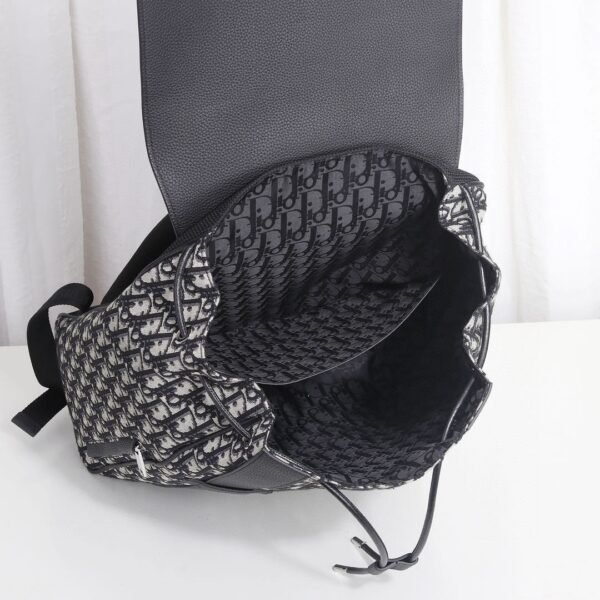 Practical and stylish, the backpack features a spacious main compartment secured by a drawstring and flap closure. Inside, a dedicated flat pocket helps organize smaller essentials, while the heat-embossed “Dior” signature adds a hidden mark of quality.