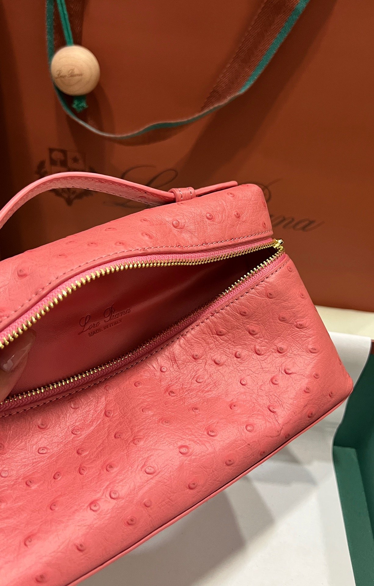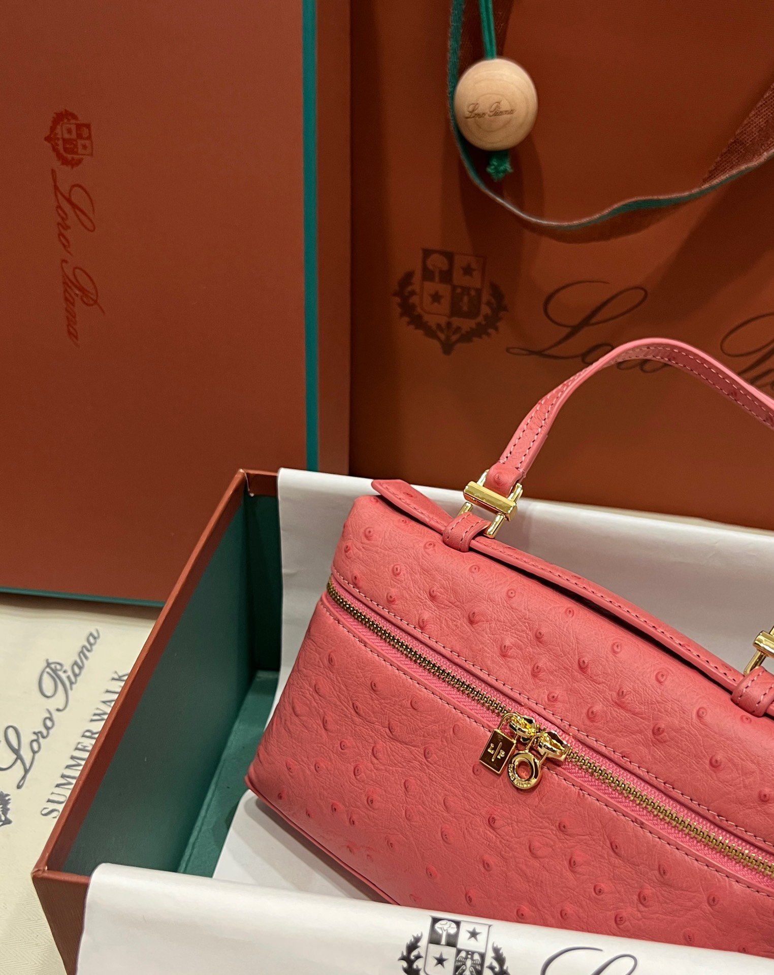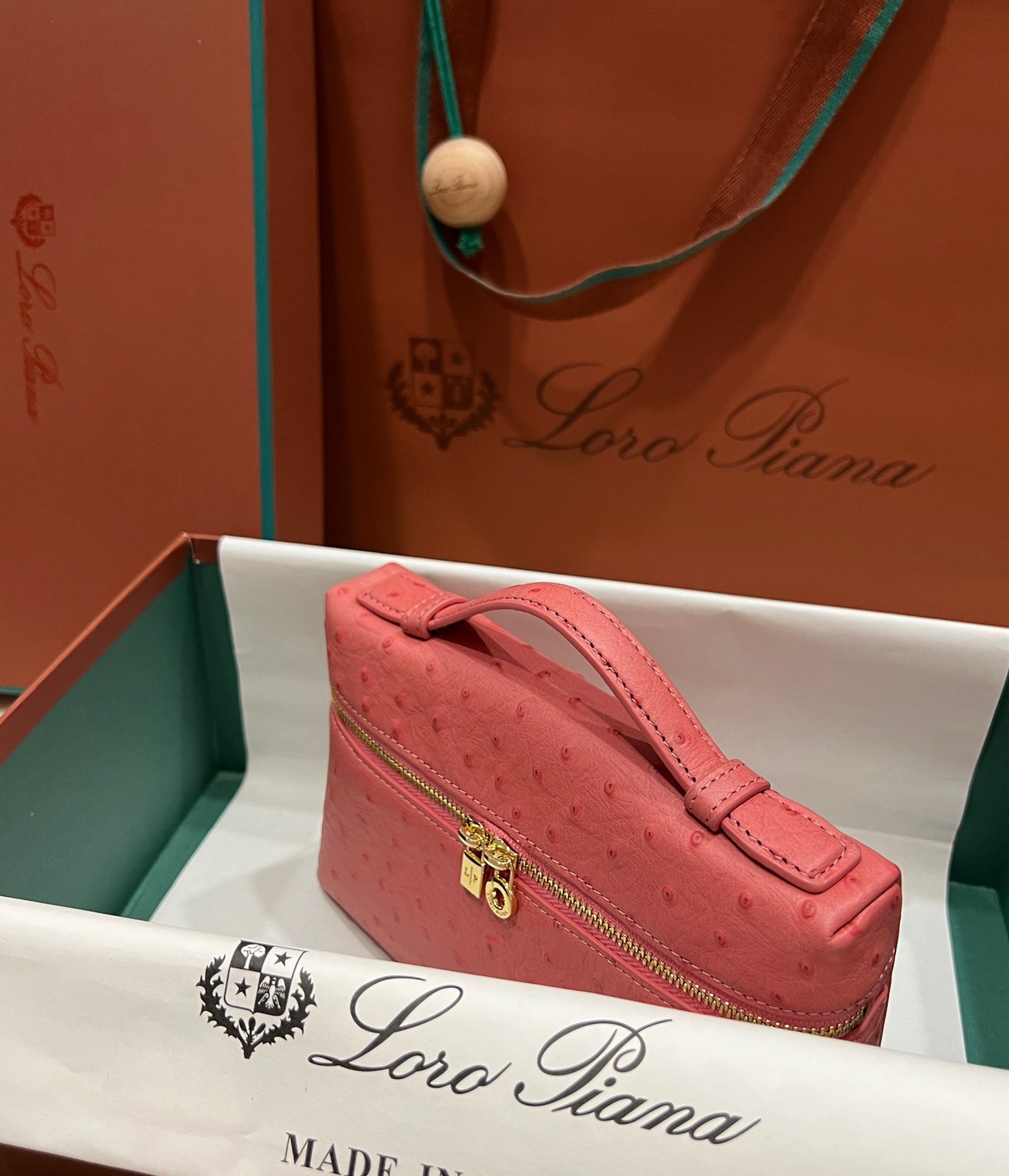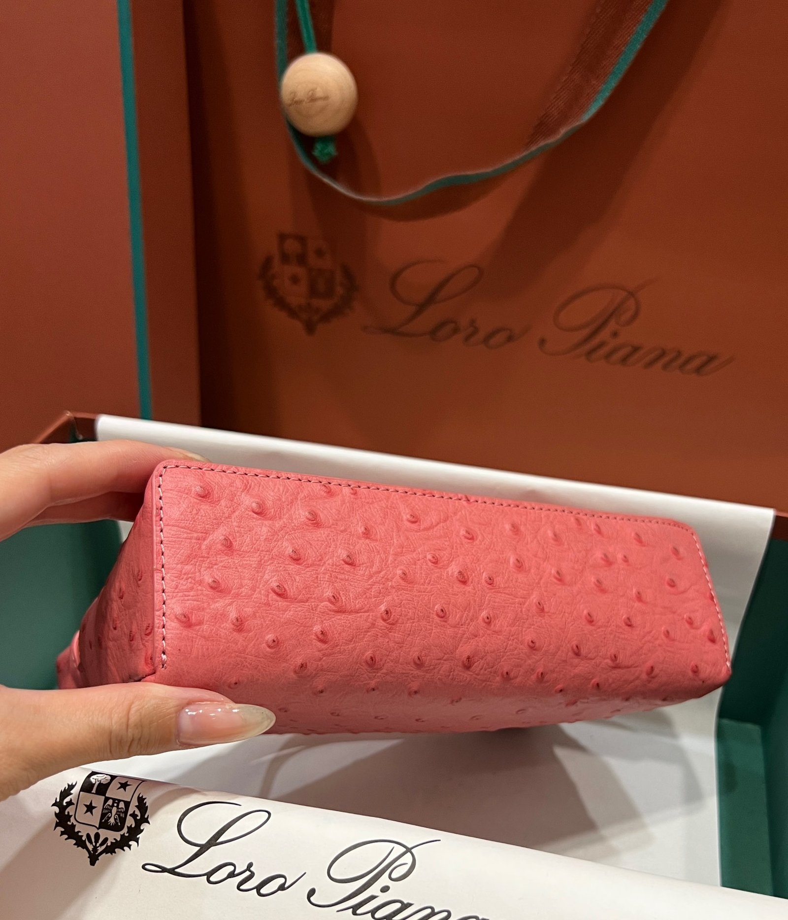 Exotic Minimalist Luxury The Loro Piana Extra Pocket L19 is the ultimate accessory for the modern connoisseur. Crafted from sumptuous Ostrich leather, this bag elevates the “Quiet Luxury” aesthetic with its rich texture and distinctive quill pattern, offering a tactile experience that is second to none.