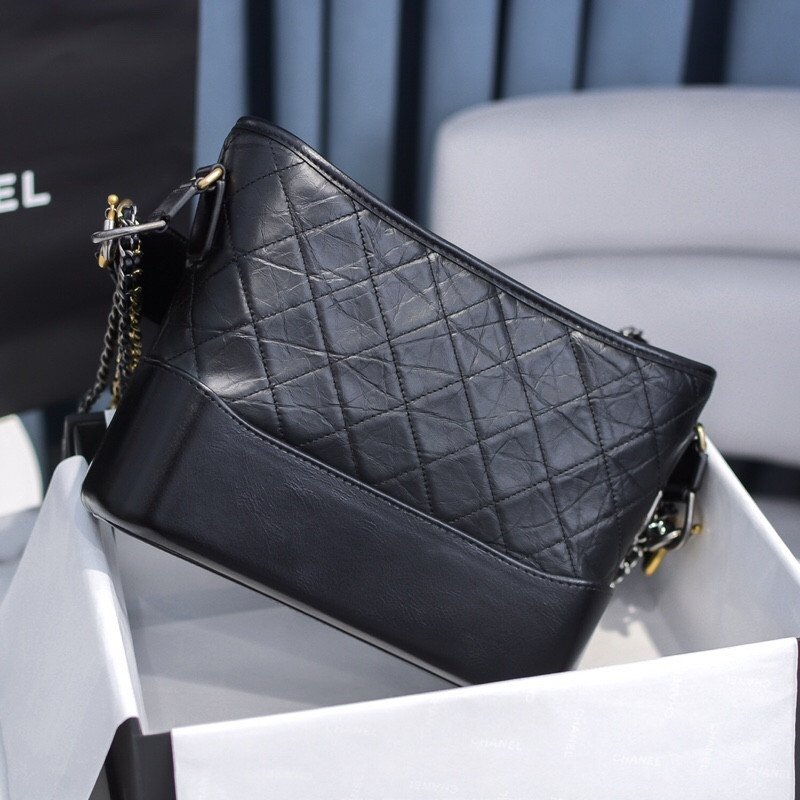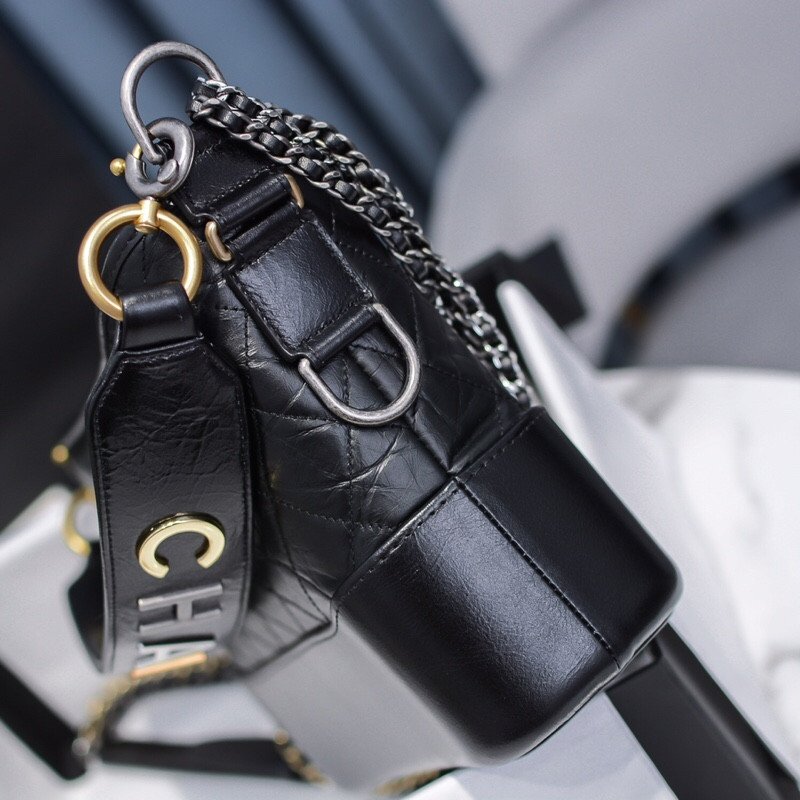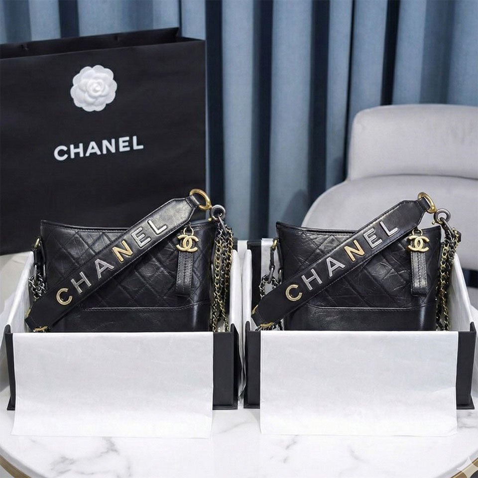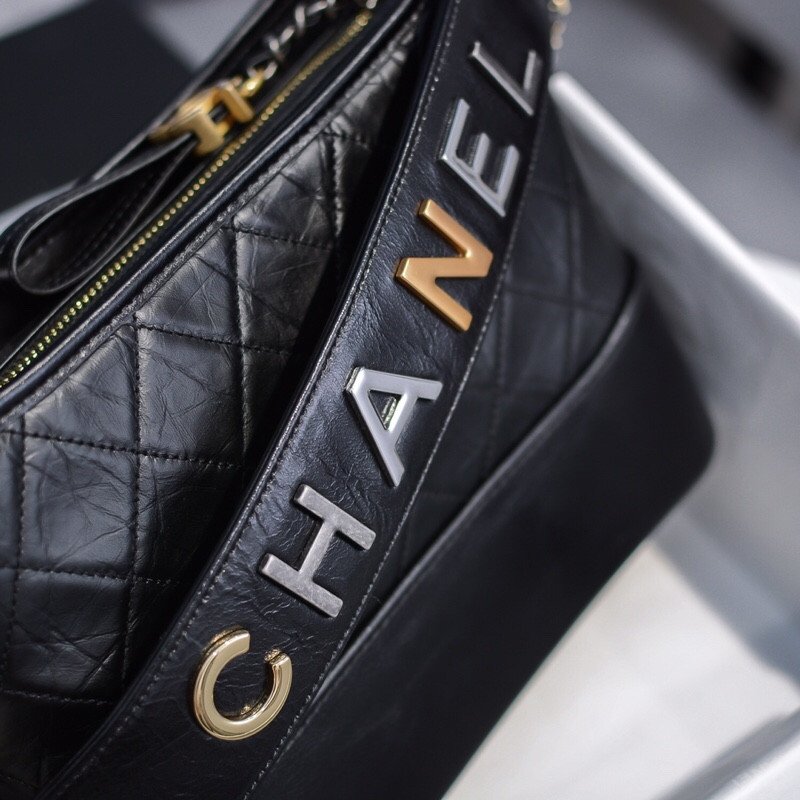 Elevate your Gabrielle collection with this 2020 Spring/Summer New Arrival, a bold evolution of the classic hobo that defines “New Trendy”. This edition retains the beloved “soft body, hard base” structure but introduces a striking statement piece: a wide leather shoulder strap embellished with “CHANEL” metal lettering.