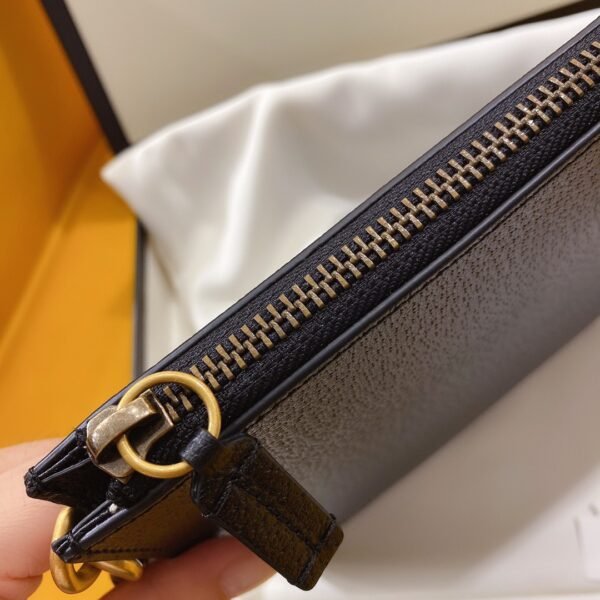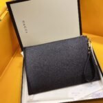 Everyday Utility & Versatile Wear Designed for effortless everyday organization or chic evening use, this flat pouch secures your daily essentials, documents, or tech with a smooth top zipper. For added convenience and security, it comes fully equipped with a matching, detachable black leather wrist strap attached by high-quality gold-toned hardware. This allows the bag to be styled effortlessly as a hands-free wristlet or carried elegantly as a traditional clutch.