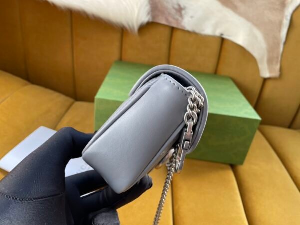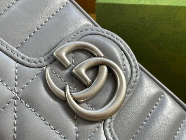 Refined Craftsmanship & Design Crafted from premium, original factory leather, this bag offers a luxurious feel and exceptional durability. The Aria collection introduces a striking new visual texture by seamlessly blending vertical and diagonal (chevron) quilting patterns. This intricate leatherwork is perfectly complemented by the signature Double G interlocking monogram hardware and a delicate chain strap in a sleek, silver-toned finish.