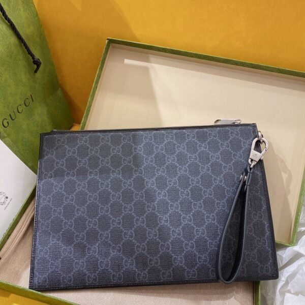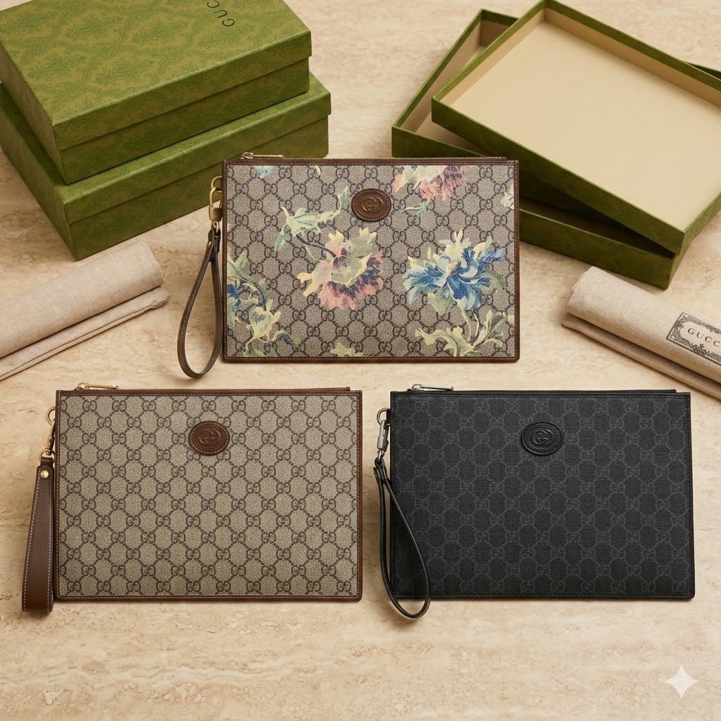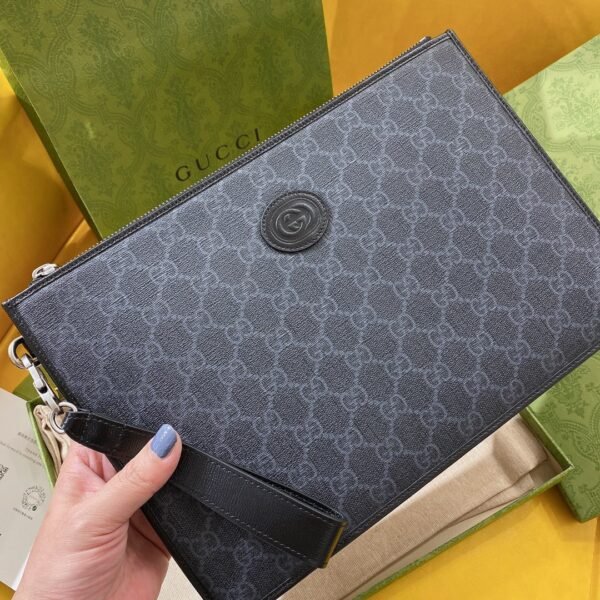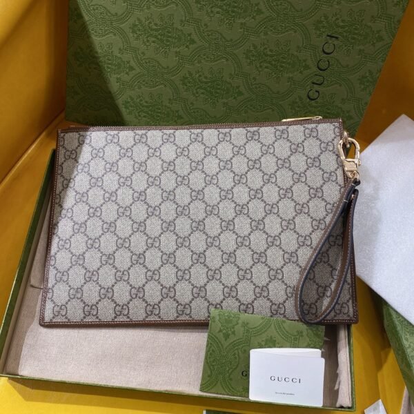 Iconic Materials & Archival Details Expertly crafted from the House’s signature GG Supreme canvas, this pouch delivers a highly structured, premium feel. The timeless canvas is elegantly framed by tonal leather trim and prominently features a retro-inspired oval leather tag bearing the Interlocking G emblem on the front face.