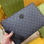 Sleek Monochrome (Black/Grey): A sharp, modern variation utilizing black and grey GG canvas perfectly complemented by matching black leather trim and a black Interlocking G patch.