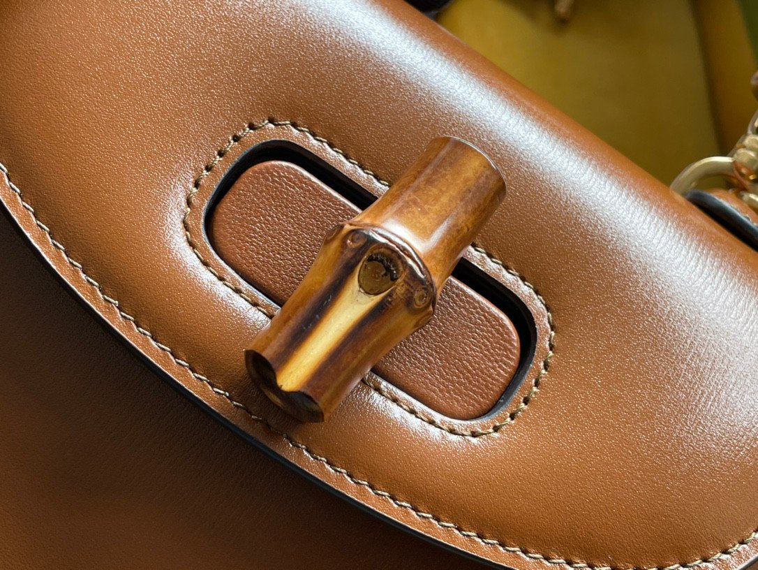 Exquisite Craftsmanship & Iconic Details Crafted from premium “original factory” leather, the bag offers a smooth, luxurious finish that perfectly complements its structured silhouette. It features the House’s signature curved bamboo top handle, which is meticulously shaped and polished, alongside a matching bamboo twist-lock closure on the front flap.