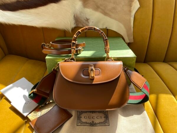 Embrace one of the most highly sought-after and trending pieces in luxury fashion with the newly updated Gucci Bamboo Small Top Handle Bag. The signature bamboo elements have been incredibly popular and remain an absolute must-have for fashion enthusiasts who appreciate iconic, stylish, and eye-catching designs.